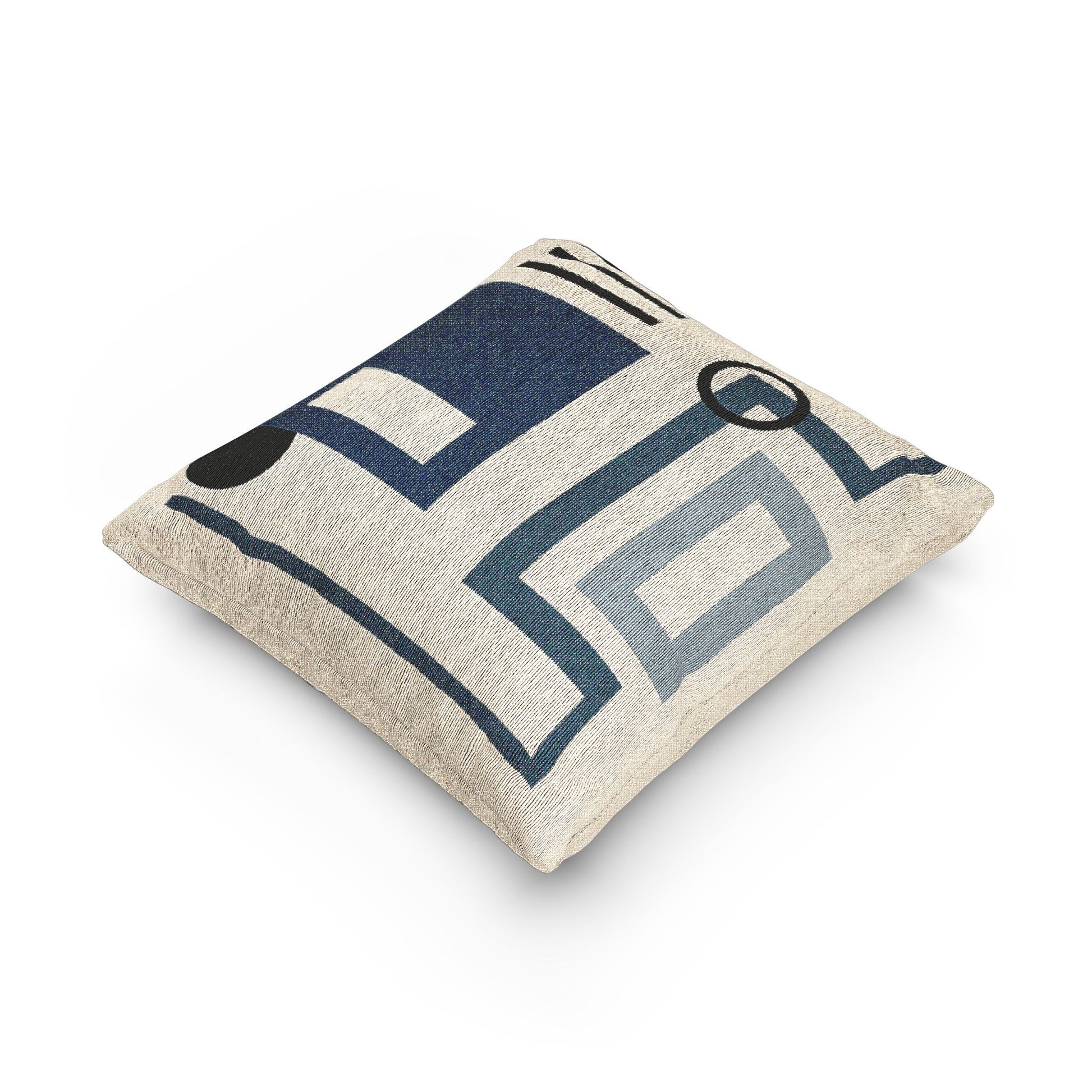 Celebrate the elegance of engineering with this woven throw pillow featuring a stylized schematic of a fluid transport system. A large blue reservoir anchors the left side, connected by a network of pipes to a smaller blue component—possibly a pump or flow meter—on the right. The clean lines and purposeful bends evoke precision and flow, making this design ideal for workspaces, studios, or STEM-inspired interiors.