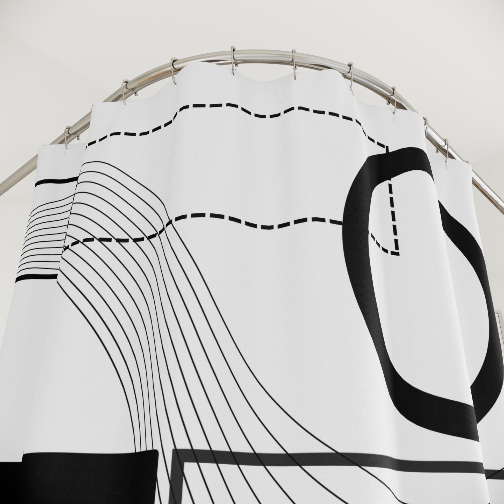 Sleek and refined, this shower curtain embodies the essence of minimalist geometry. Featuring clean lines, open space, and a bold rectangular accent with hatched detailing, this design brings a touch of structured elegance to any bathroom. Perfect for modern and industrial-inspired interiors, its understated sophistication elevates your space with subtle artistry.