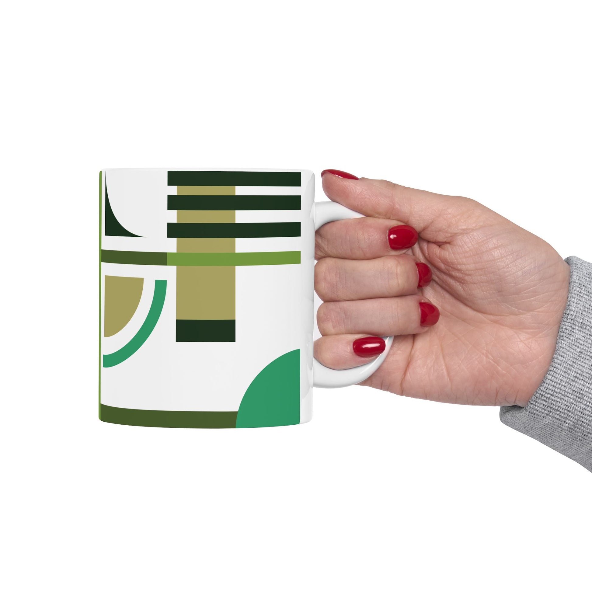 Mid-Century Modern Geometric Coffee Mug | Olive Green & Forest Green Abstract Art