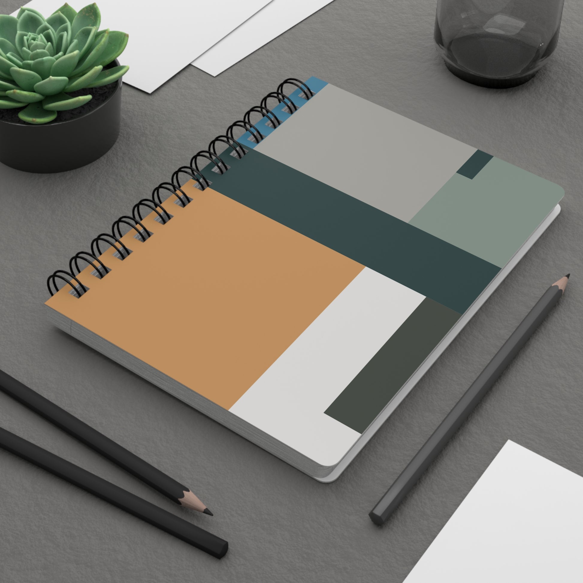 Minimalist Color Block Spiral Notebook | Earthy Teal, Ochre & Gray Modern Journal