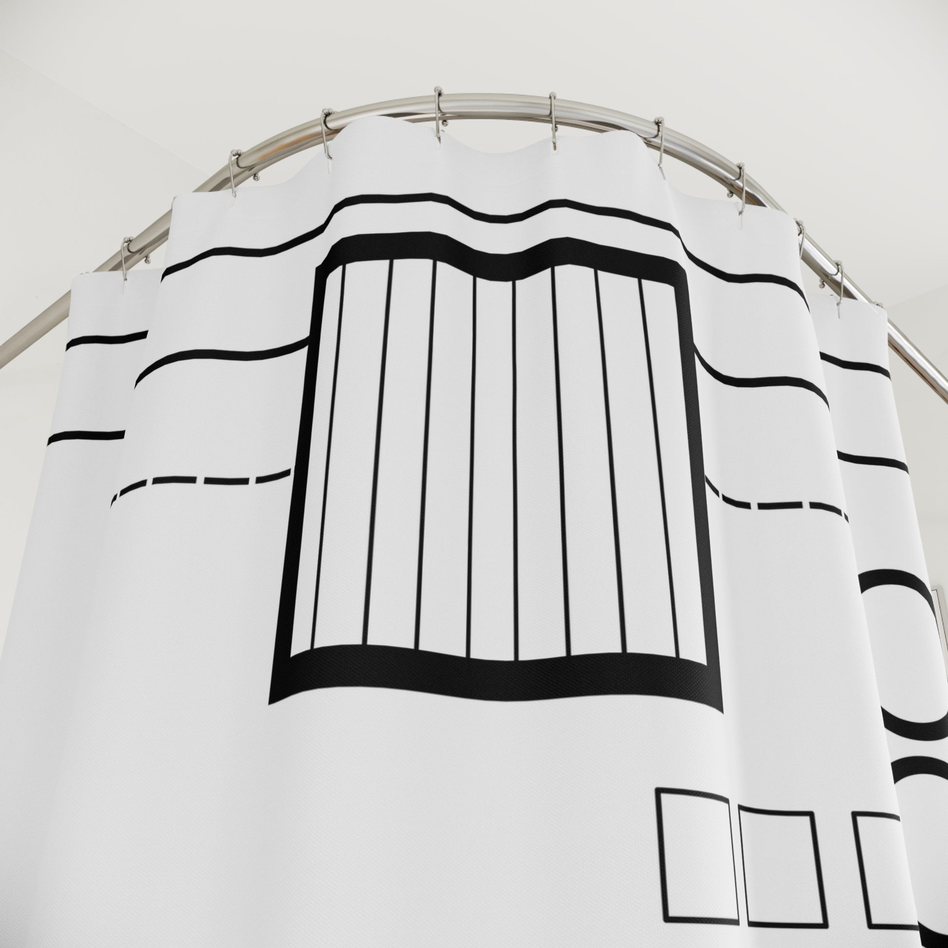 Bring abstract sophistication to your bathroom with this eye-catching geometric shower curtain. Designed in a sharp black-and-white palette, it features a rhythmic vertical bar grid and a wavy-line circle, evoking balance, contrast, and motion. The interplay of structure and fluidity makes this curtain an artistic statement—ideal for contemporary and modern interiors..