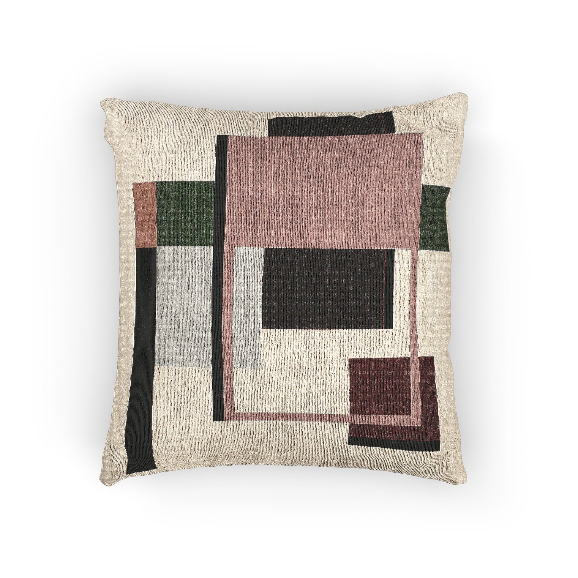 Add a bold yet balanced touch to your decor with this Modern Blocks throw pillow, featuring an abstract arrangement of overlapping rectangles and squares in rich shades of red, gray, and beige. The geometric composition creates a sense of structure and rhythm, while the muted palette keeps the design refined and versatile.