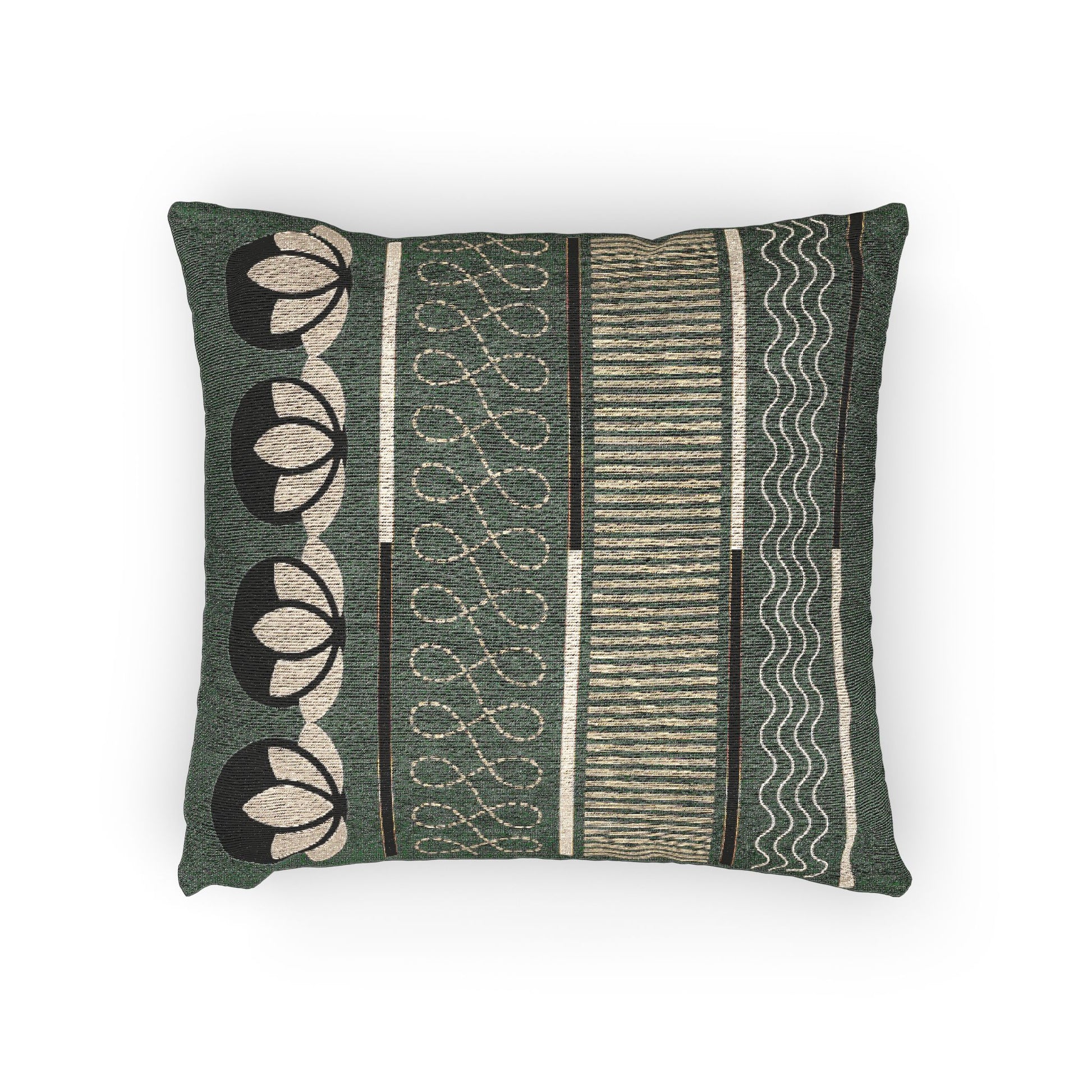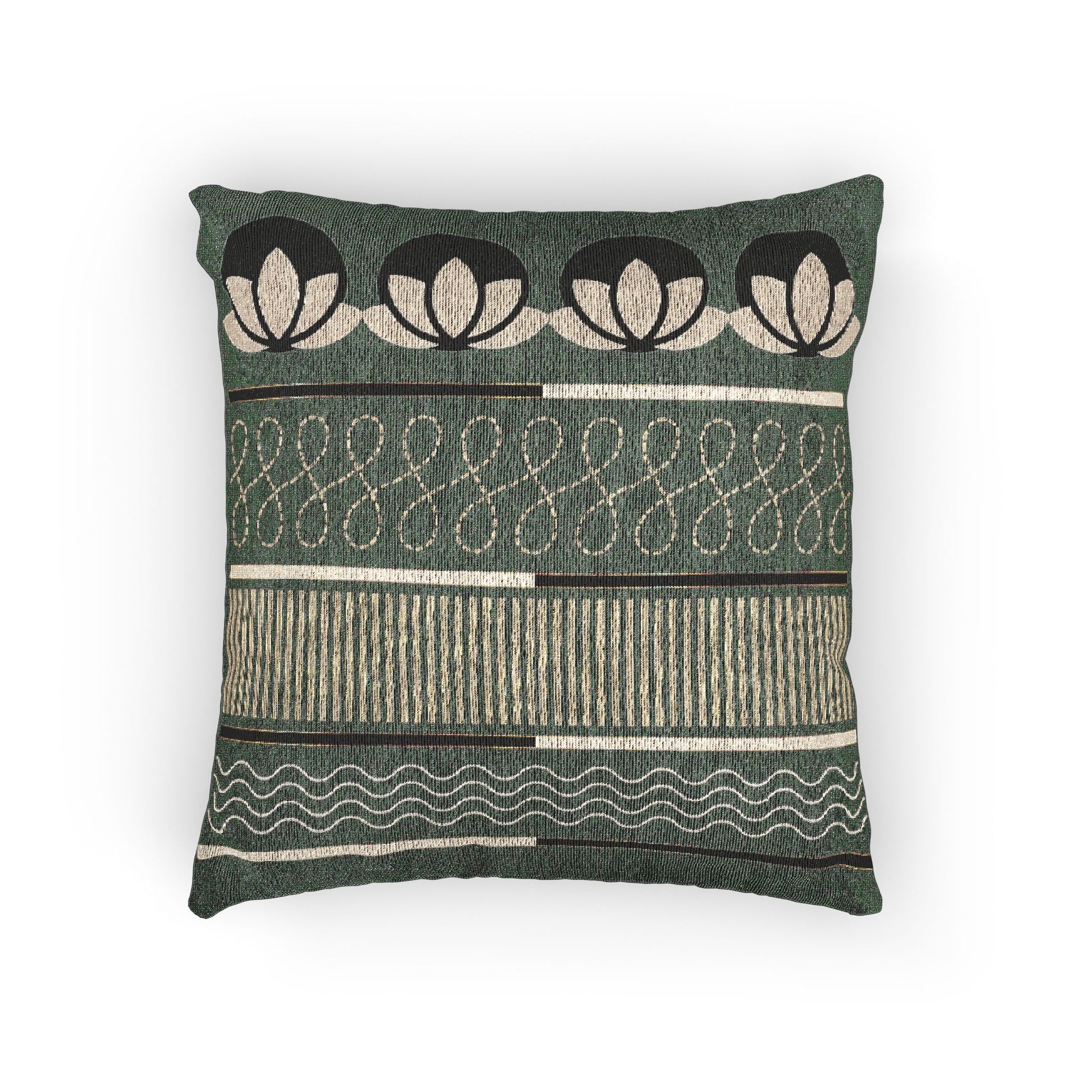 Elevate your living space with a tactile tribute to heritage and form. This woven throw pillow features five distinct horizontal bands, each paying homage to timeless textile traditions and modern minimalism. From lotus-like florals to sine-wave softness, the composition balances symmetry with subtle intricacy.